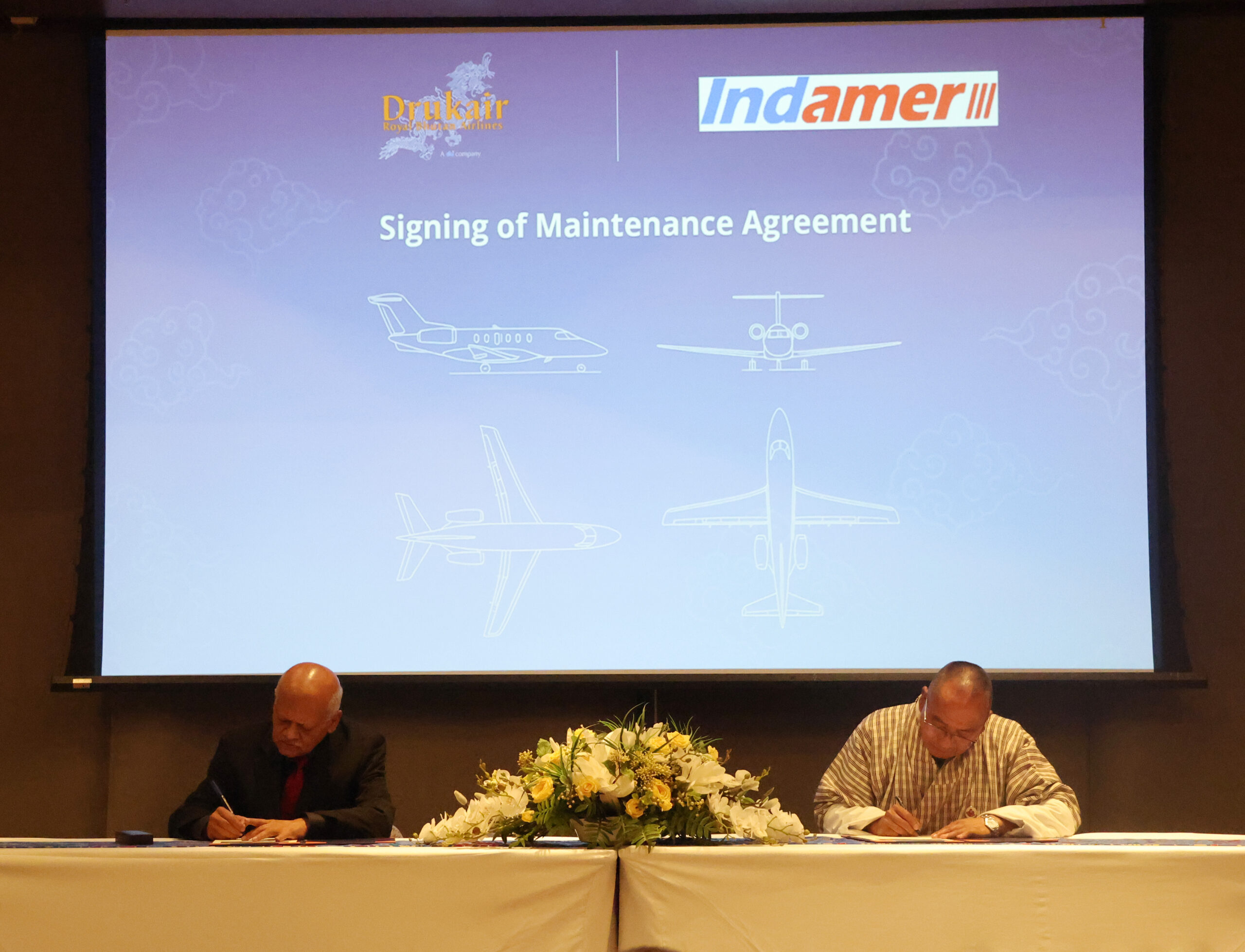 Drukair, Royal Bhutan Airlines and Indamer Aviation Private Limited signed a Maintenance Agreement in the presence of Yab Dasho Dhondup Gyaltshen.